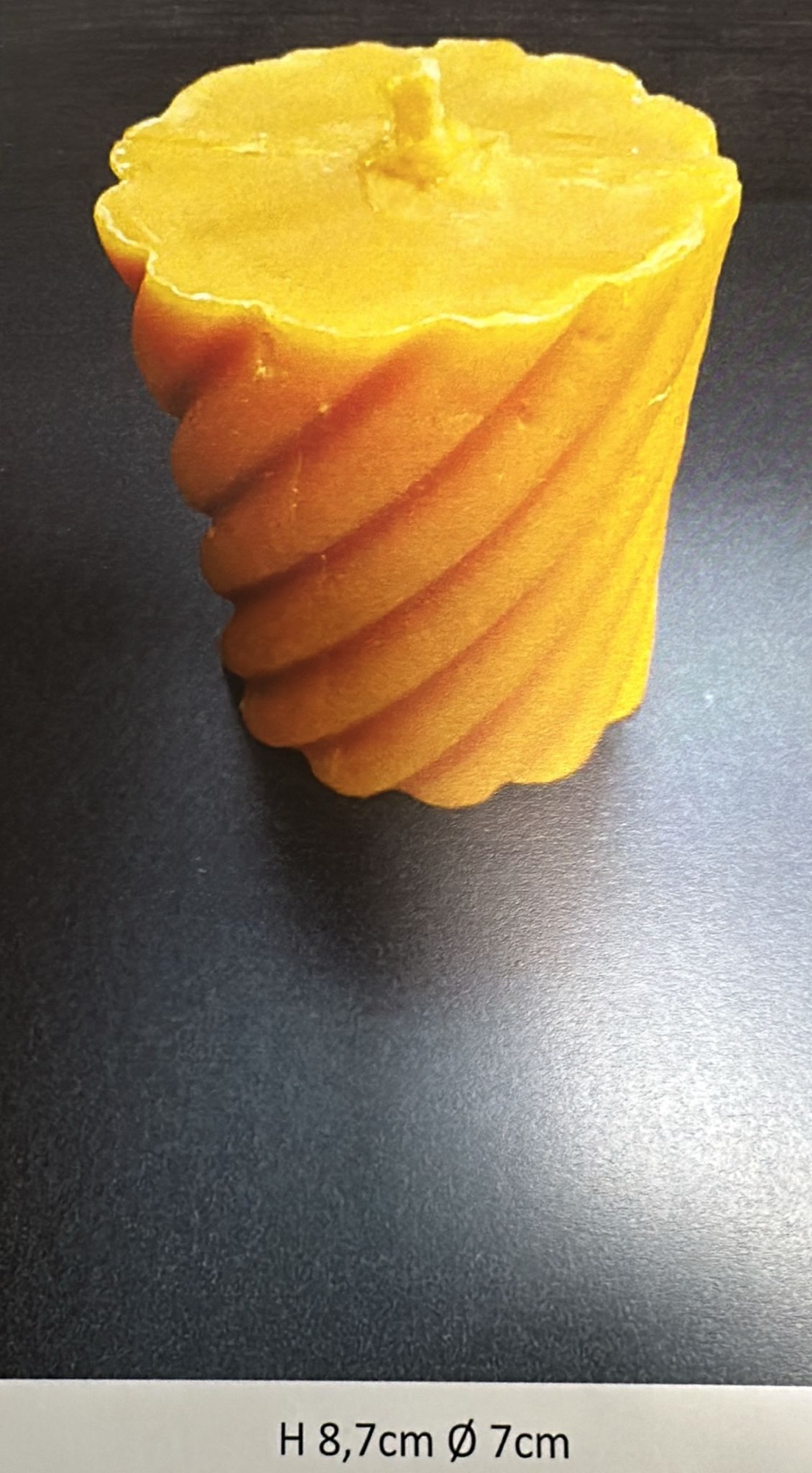 Diese Kerze ist 10,5 cm hoch und hat einen Durchmesser von 5 cm